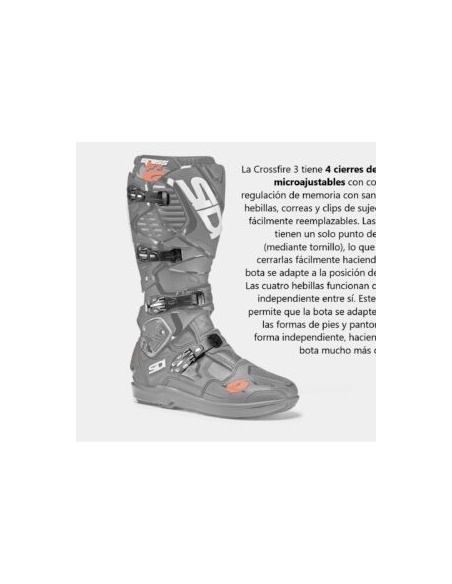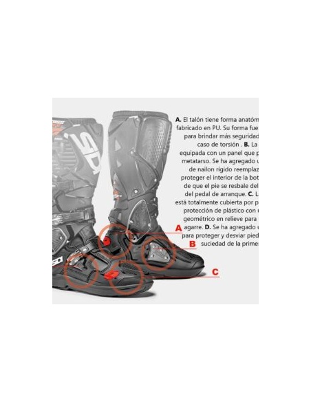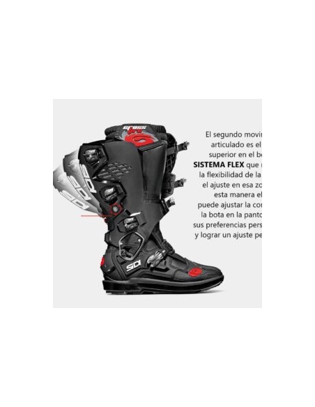 Usada por pilotos profesionales de MX, Enduro y Superenduro, la CROSSAIR ofrece todas las cualidades de los productos premium de Sidi en tan solo 1665 gramos (talla 43). Mucho más ligera que cualquier otra bota. El exoesqueleto interno reforzado con fibra de vidrio proporciona todo el soporte y la seguridad necesarios, manteniendo una estructura increíblemente ligera. La suela, impulsada por el compuesto Materiis, se desarrolló en colaboración con pilotos profesionales para lograr el control y la durabilidad necesarios.